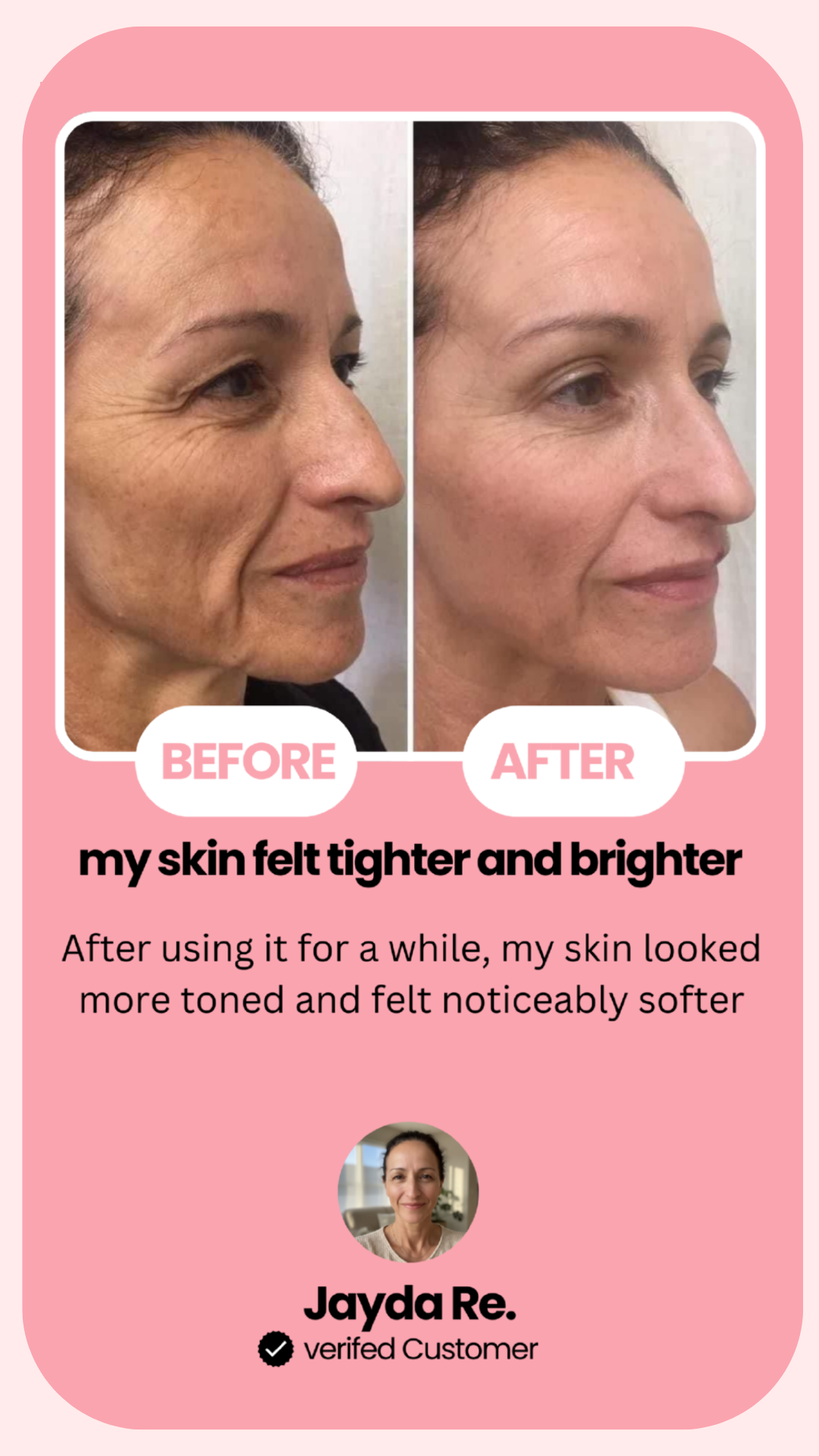Glowsena Pro uses advanced light and vibration technology to stimulate collagen production and improve circulation in the skin. This helps to tighten and firm the skin, giving you a more lifted and youthful appearance.
